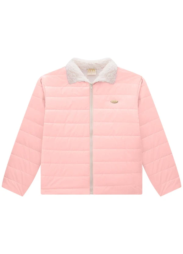 Milli e Nina - Jaqueta Puffer em Nylon Perolizado Matelado Rosa