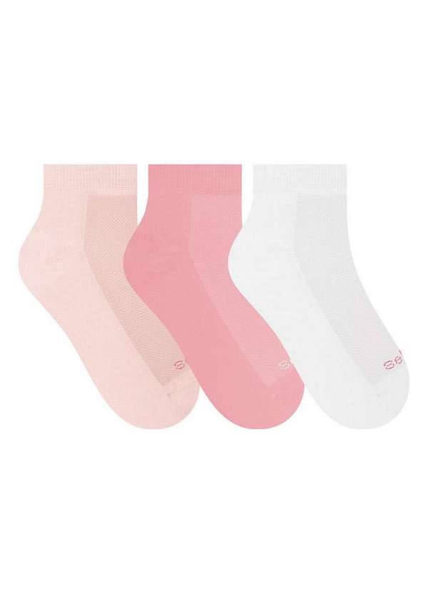 Selene - Kit 3 pares de Meias Cano Curto Selene 4835-001 995-Rosa-Chá-Rosa-Branco