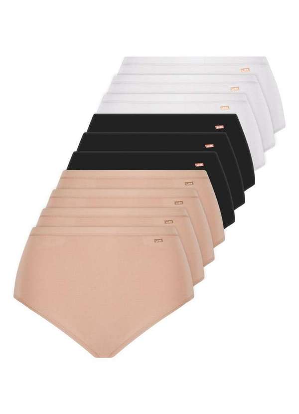 Lupo - Kit com 10 Calcinhas Alta Loba 40351-001 Plus Size Natural-Preto-Branco