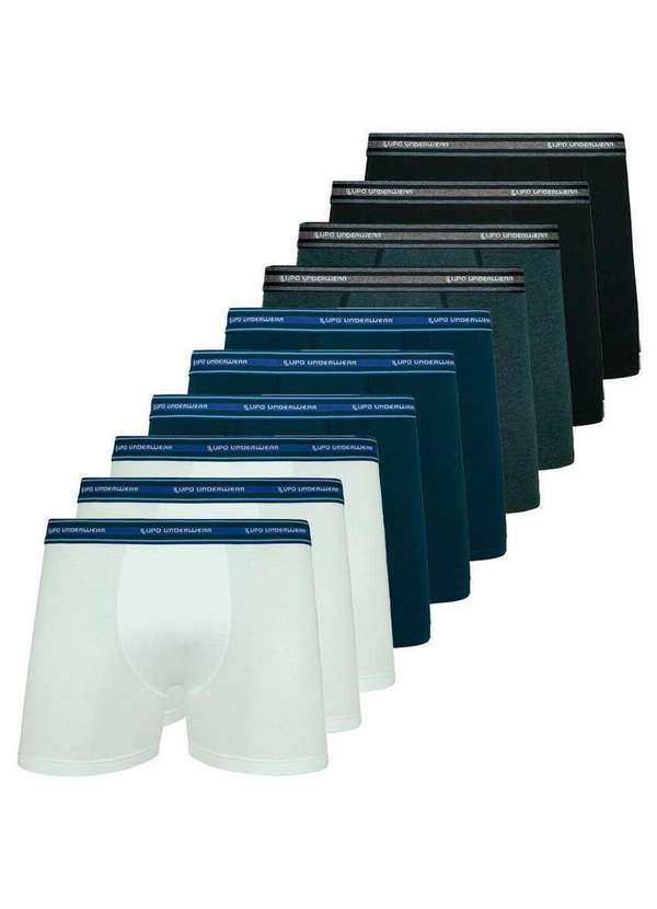 Lupo - Kit com 10 Cuecas Boxer Lupo 523-088 Branco-Marinho-Chumbo-Preto