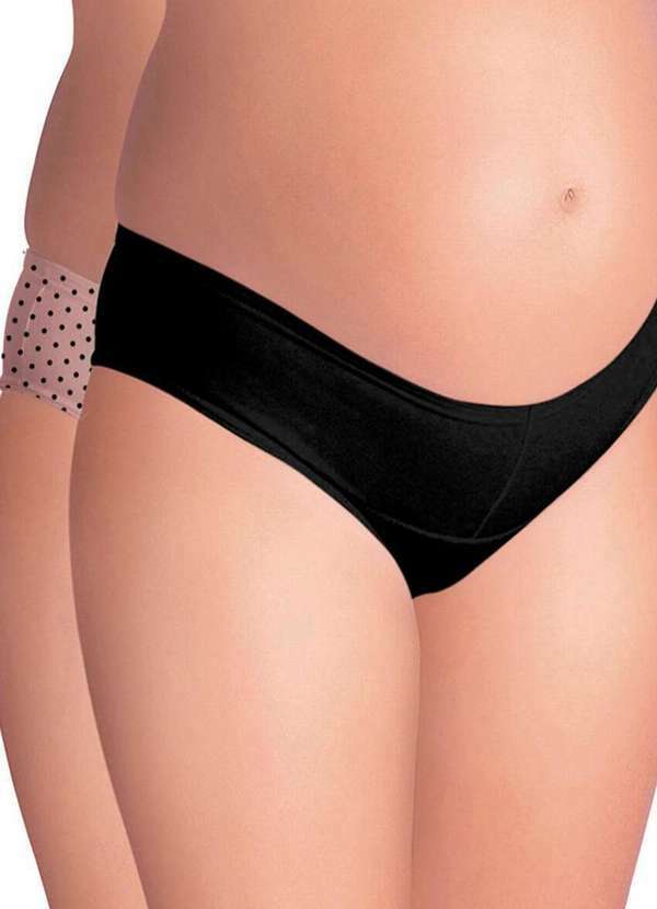 Características: Kit com 2 calcinhas biquíni gestante. Confeccionadas em cotton, confortável e de toque extremamente macio. Laterais largas e pernas cavadas. Parte superior frontal da cintura em tecido duplo sem elástico, que acomoda e acompanha o crescimento da barriga. Forro em puro algodão antibacteriano. Acabamento das cavas das pernas em elástico viés e cós traseiro em elástico embutido. Modo de Lavagem: Lavar à mão com sabão neutro. Enxague normal. Não usar alvejante à base de cloro. Secar à sombra. Não passar a ferro. Não usar máquina de secar. Não limpar a seco. Composição: Corpo: 95% Algodão e 05% Elastano. Forro: 100% Algodão.