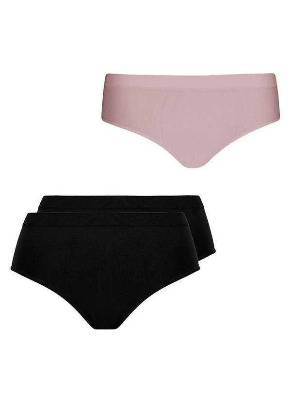 Características: Calcinha caleçon sem costura. Tecnologia antimicrobial e forro de algodão. Produzido com fios especiais. Excelente conforto e durabilidade. Cores: Preto: Todas preto Natural: Todas natural Nude: Todas nude Preto/Natural: 2 preto e 1 natural Preto/Nude: 2 preto e 1 nude Preto/Natural/Nude: 1 preto, 1 natural e 1 nude Composição: 93% poliamida, 05% elastano e 02% Algodão.