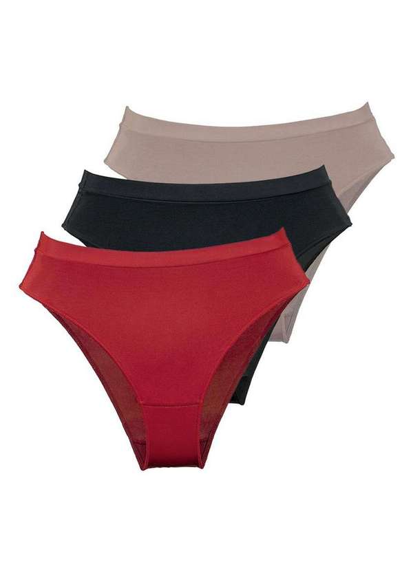 Demillus - Kit com 3 Calcinhas Demillus 26826 Colorido Carmim-Preto-Bege