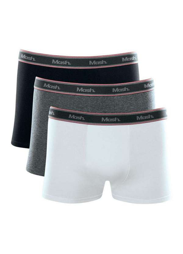 Mash - Kit com 3 Cuecas Boxer Mash 110.34 Cz06-Branco-Chumbo-Preto