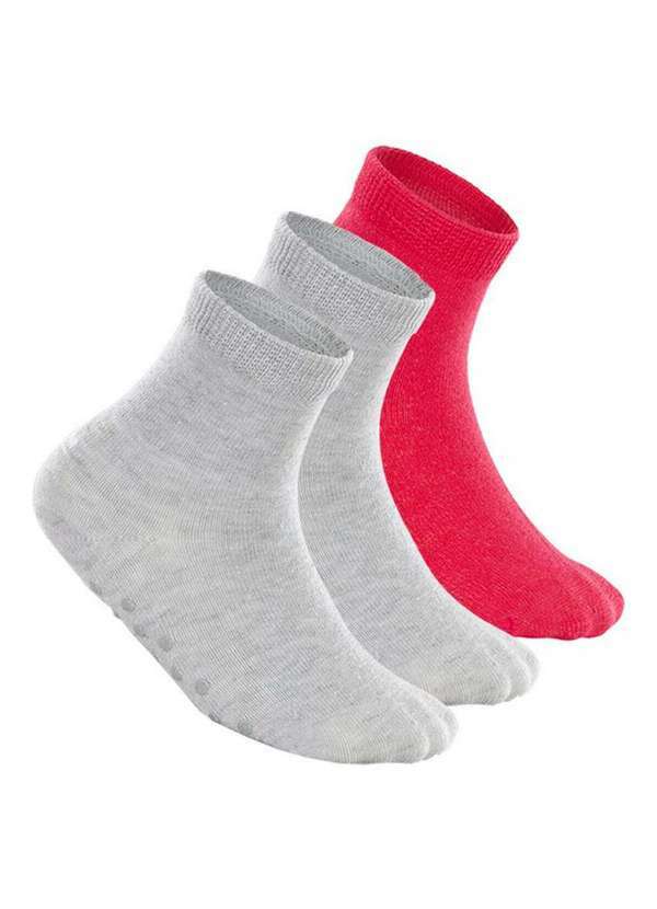 Lupo - Kit 3 pares de Meias Bebê Antiderrapante Lupo 2041-032 Cinza-Rosa