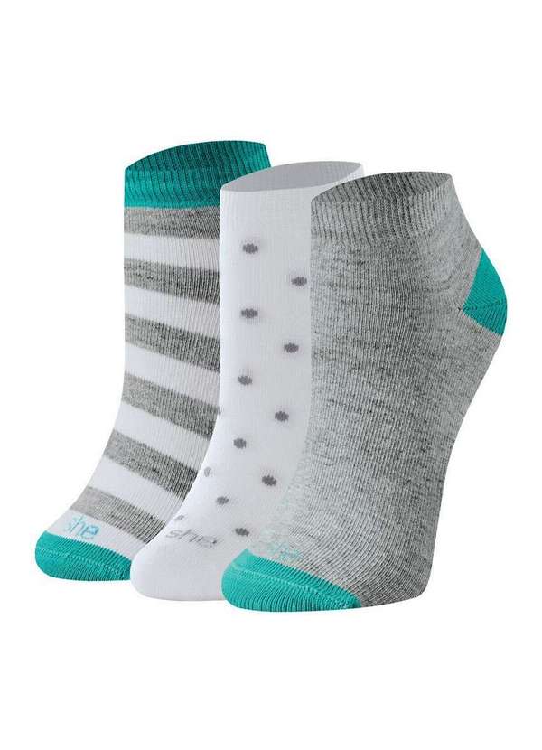 She - Kit 3 pares de Meias Cano Curto She 286.03 Az06-Cinza-Branca