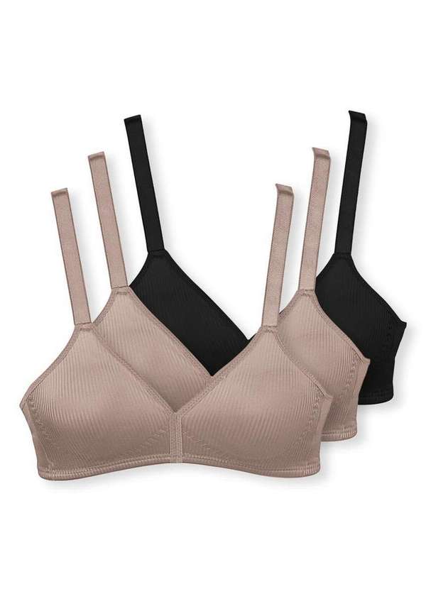 Característica: Sutiã Moderato sem aro e sem bojo. Busto anatômico, que acomoda os seios na medida ideal. Decote acentuado. Laterais largas para ajuste perfeito. Cós duplo para maior sustentação. Alças fixas e reguláveis. Atende tamanho Plus Size. Cores: Preto: Todas Pretas Bege Rosado: Todas Bege Preto/Preto/Bege Rosado: 2 Preto e 1 Bege Bege Rosado/Bege Rosado/Preto: 1 Preto e 2 Bege Composição: 81% Poliamida e 19% Elastano.