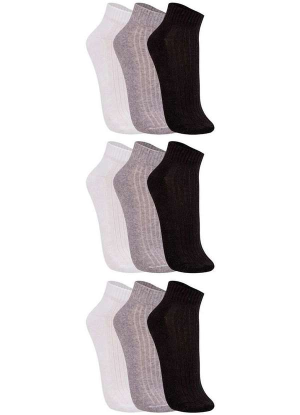 Trifil - Kit 9 pares de Meias Esportiva Cano Curto Trifil 8004 Branco-Mescla-Preto