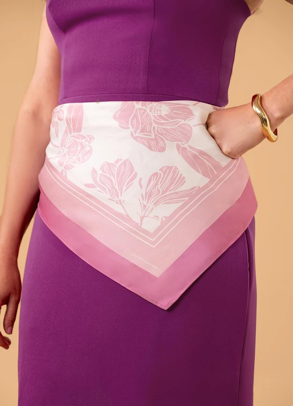 Principessa - Lenço Barrado Off White com Estampa Floral Rosa Livia