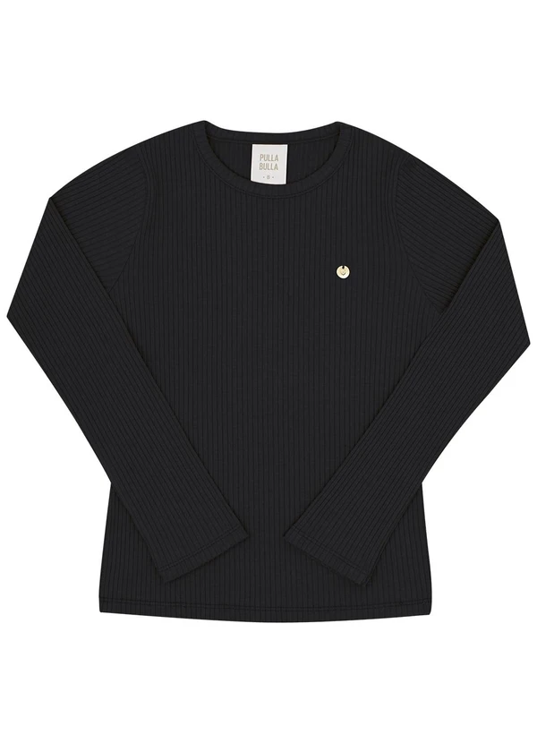 Pulla Bulla - Blusa Infantil Menina Malha Canelada Preto