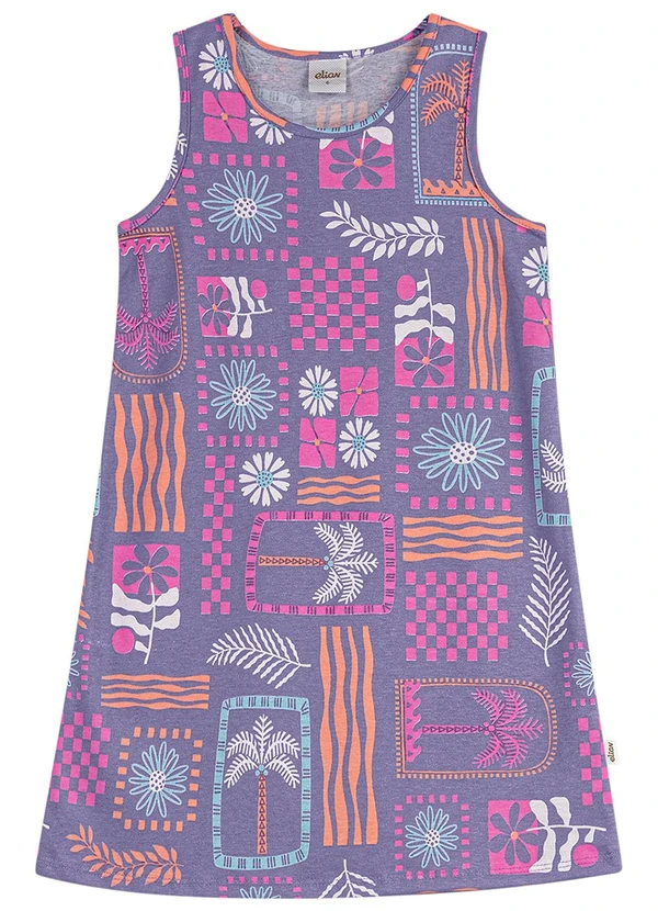 Elian - Vestido Infantil Menina Folhagem Tropical Roxo