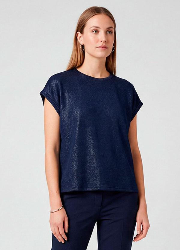 Infinita Cor - Blusa Feminina Manga Cavada Azul