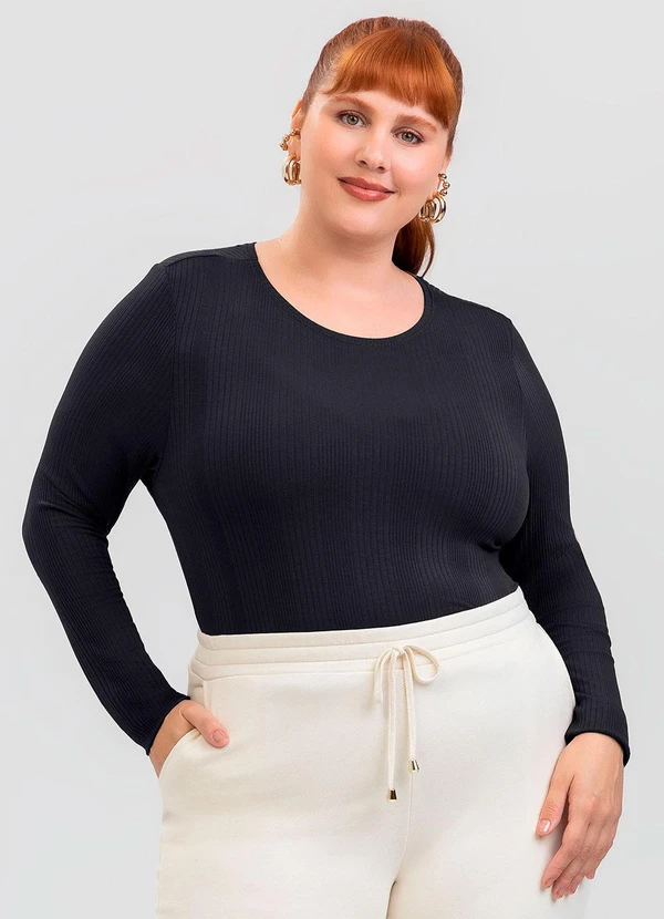 Cativa - Blusa Plus Size em Canelado Preto