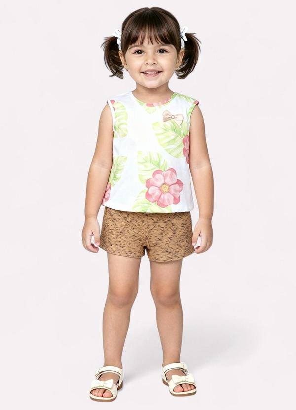 Kyly - Conjunto Infantil Menina Flores Branco