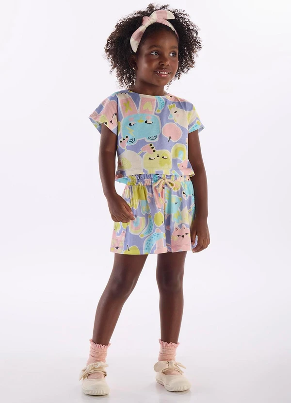 Três e Já - Conjunto Menina com Blusa e Short Roxo