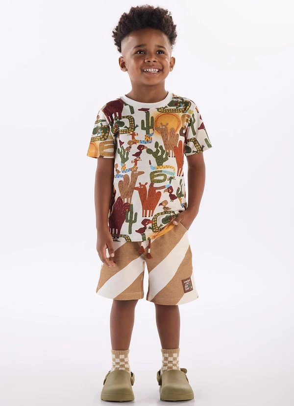 Três e Já - Conjunto Menino Camiseta e Bermuda Bege