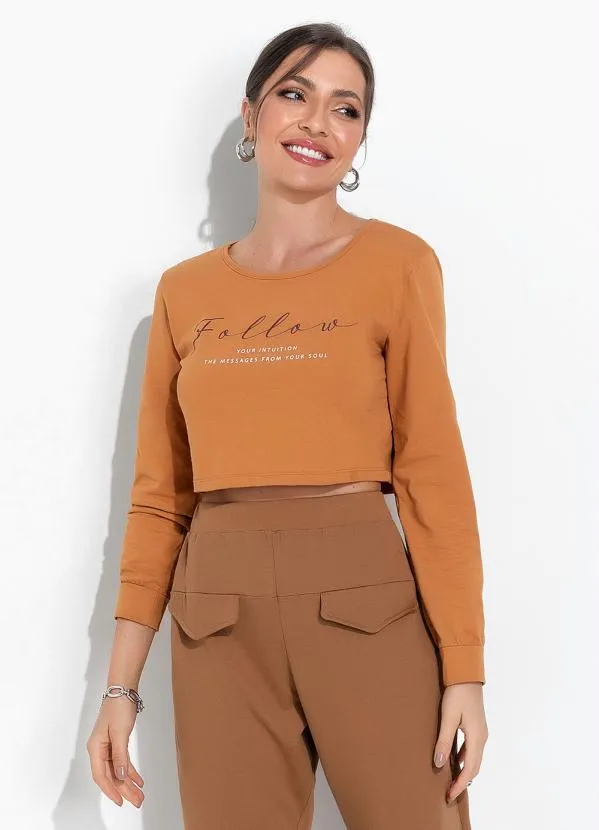 Moda Pop - Cropped Caramelo com Estampa Localizada