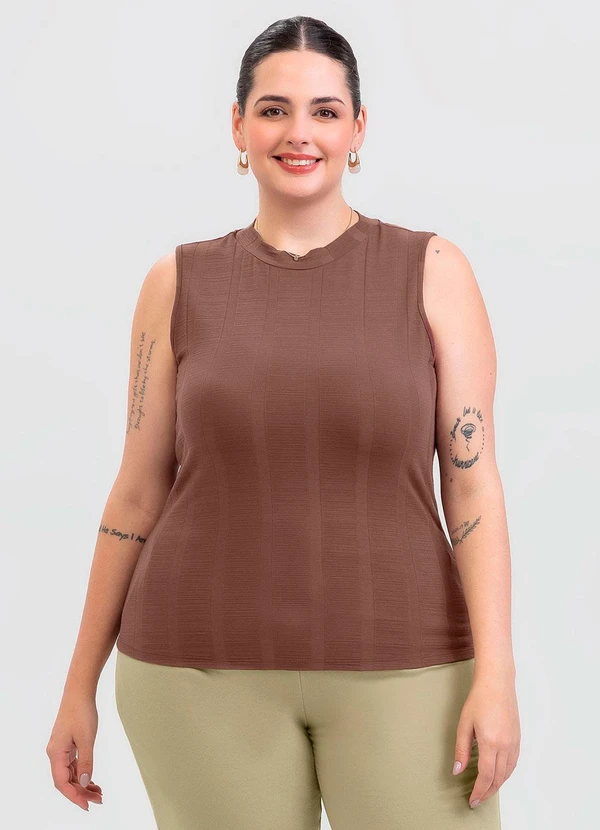 Cativa - Regata Plus Size em Canelado Marrom