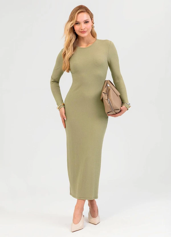 Cativa - Vestido Midi em Canelado Verde