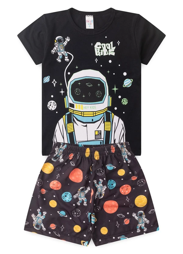 Atelie da Crianca - Pijama Masculino Verão Astronauta Preto