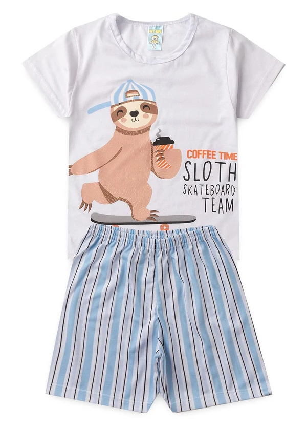 Atelie da Crianca - Pijama Masculino Verão Preguiça Skate Branco