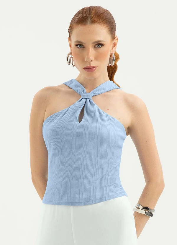 Cativa - Regata Decote Gota Canelada Azul Claro