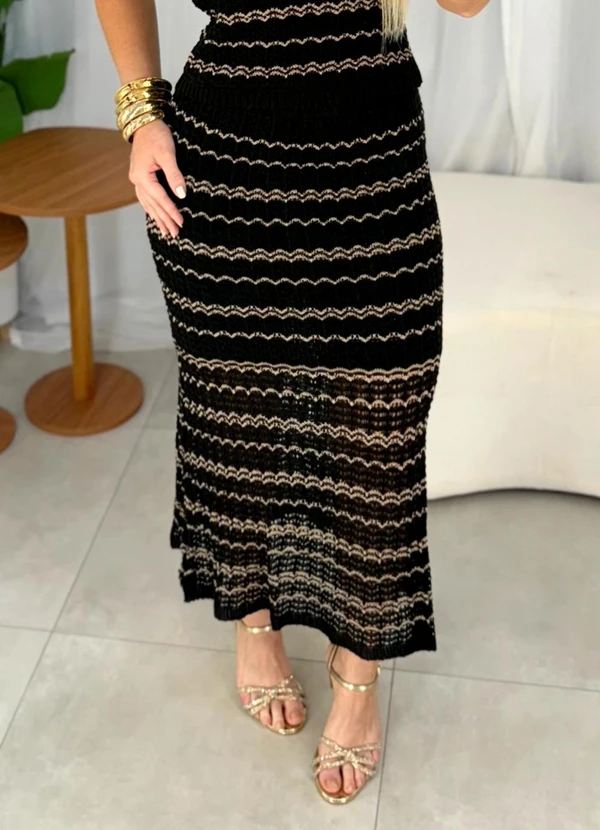 Doce Tom - Saia em Tricot Estampado Curta Preto