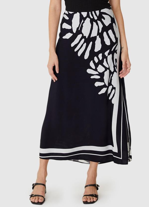 Malwee - Saia Mídi Reta Abstrata Preto