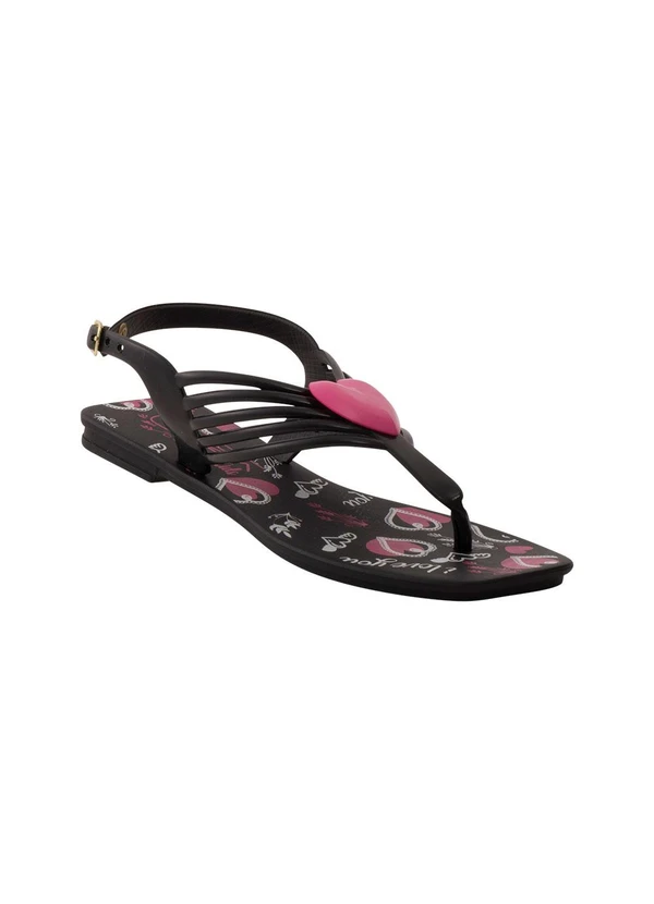 Perfecta - Sandália Preta com Solado Estampado