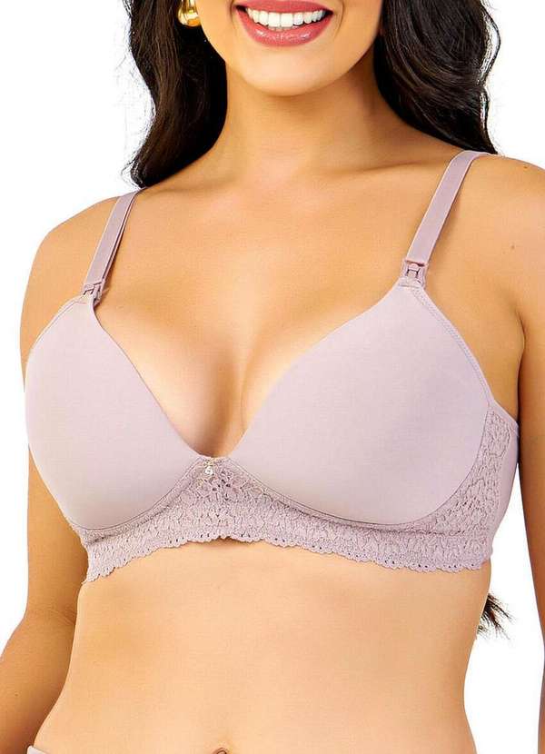 Características: Sutiã Amamentação Sem Aro com Bojo Detalhes de renda de toque algodoeiro super macia Bojo macio e flexível, coenizado em algodão Fecho click pratico para abertura Base com elástico de 20mm mais sustentação Costas com detalhes de renda Viés do próprio tecido Abertura para amamentar na lateral Alças de 17mm em microfibra Fecho com 4 regulagens Composição: Tecido: 80% Poliamida e 20% Elastano Renda: 90% Poliamida e 10% Elastano Forro do Bojo: 100% algodão Enchimento: 100% Poliuretano