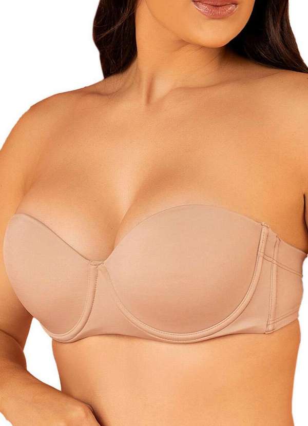 Características: Sutiã Bustiê Com Aro e Bojo Tecido lycra opaca de boa compressão, sustentação e transpirabilidade Arco firmador Bojos em espuma macia, não marca sob a roupa Fecho duplo com 4 níveis regulagens Lateral com duplo silicone Outros Detalhes: Acompanha 1 par de alças, acompanha 1 extensor Composição: Tecido: 85% Poliamida e 15% Elastano Forro do Bojo: 100% Poliéster Enchimento: 100% Poliuretano
