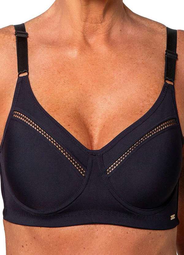 Características: Sutiã com aro e sem bojo Bojos moldados,proporciona o encaixe perfeito dos seios Alças fixas ajustáveis de 17 mm nos tamanhos 44/46 e 22 mm nos tamanhos maiores Laterais largas para maior conforto Fecho em colchete nas costas Confeccionado em cetinete microfibra,proporciona toque macio,conforto e boa estrutura com elasticidade na medida certa Tecido com respirabilidade e conforto térmico Atende tamanho plus size Composição: 80% Poliamida,20% Elastano