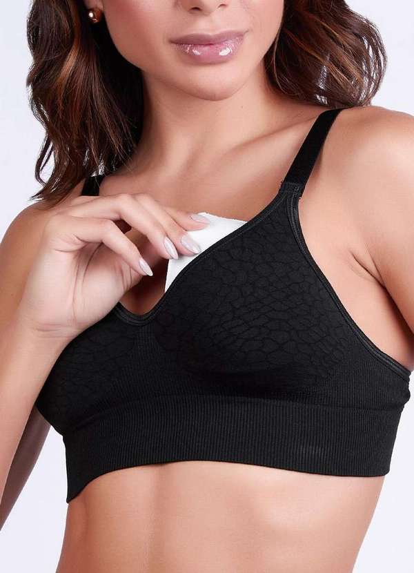 Características: Sutiã Curve Sem Costura Tecnologia Seamless trazendo maior conforto e durabilidade Estrutura com fio trilobal com aspecto acetinado em jacquard Croco Sem aro e com bojo removível Confeccionado em malha dupla para melhor sustentação Decote com canelado que traz maior cobertura e segurança, com alças elásticas mais largas que dão maior conforto e distribuem melhor o peso do busto Costas regata com fecho e regulador para melhor ajuste do tórax Laterais largas garantem maior sustentação Composição: 93% Poliamida e 07% Elastano Forro Bojo: 100% Poliéster