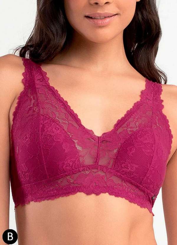 Características: Sutiã com bojo fixo que proporciona melhor sustentação. Costura no busto sem aro. Peça revestida em renda. Alças largas ajustáveis e fecho nas costas. Possui colchete com três regulagens. Modelagem anatômica. Tecido com tecnologia de secagem rápida. Modelo regata, ideal para tamanhos maiores. Outros Detalhes: Taça B. Composição: 86% Poliamida e 14% Elastano.