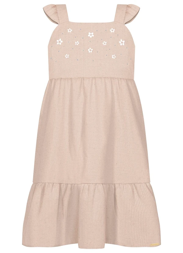 Alakazoo - Vestido Curto de Alças com Babados e Strass Bege