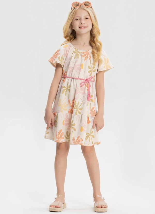Alakazoo - Vestido Curto Estampado de Mangas Curtas Rosa