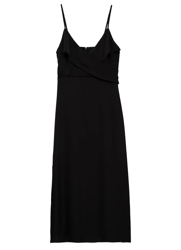 Enfim - Vestido Evasê Mídi em Cetim Preto
