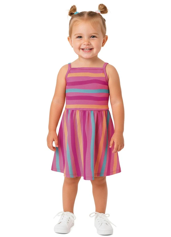 Malwee Kids - Vestido Godê Acinturado Listrado Rosa