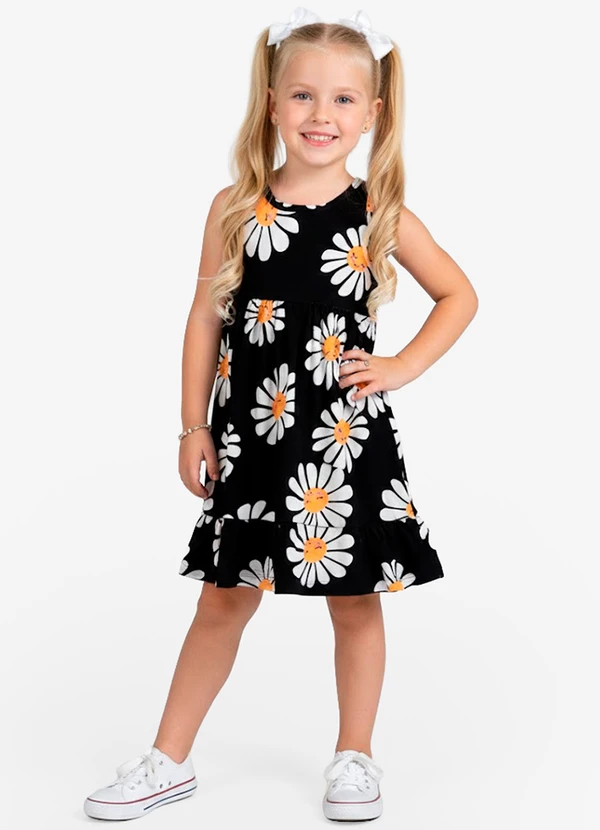 Select - Vestido Infantil em Meia Malha Penteada Preto