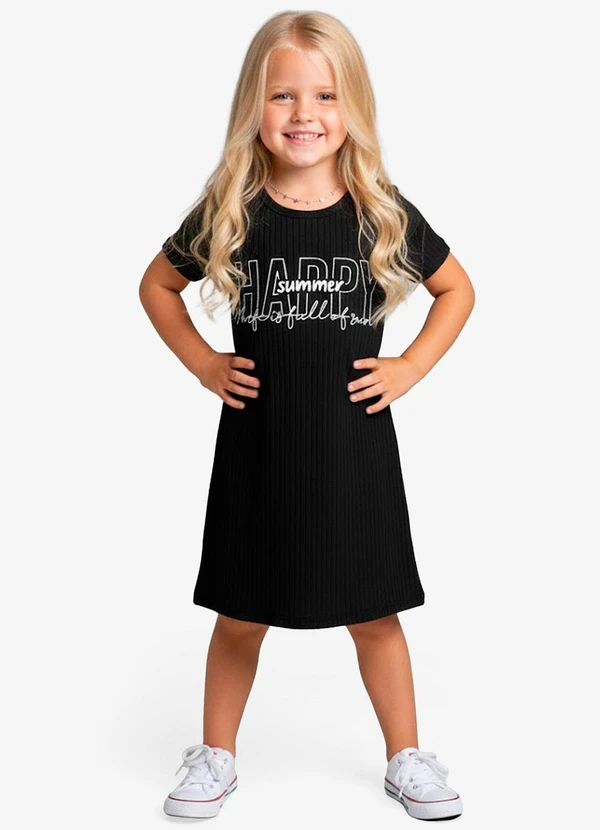 Select - Vestido Infantil em Ribana Canelada Preto