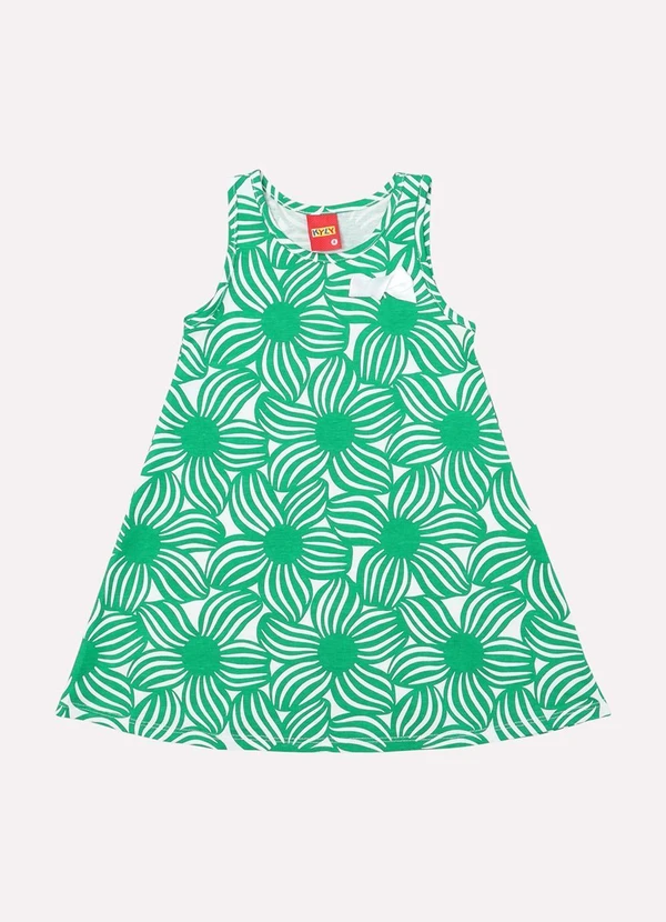 Kyly - Vestido Infantil Menina em Algodão Flores Verde