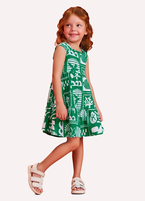 Nanai - Vestido Infantil Menina em Algodão Verde