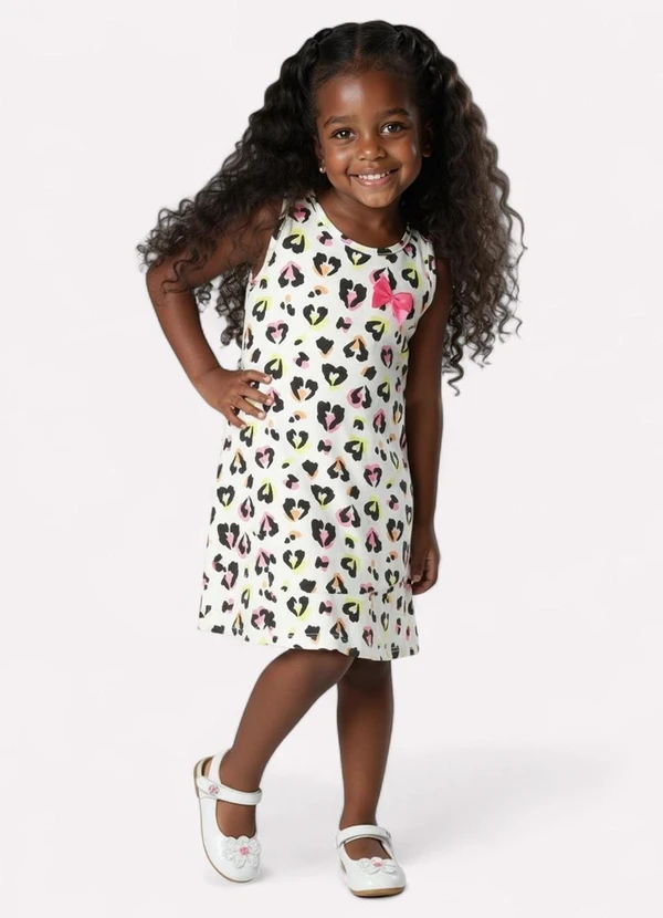 Kyly - Vestido Infantil Menina Estampado Off White