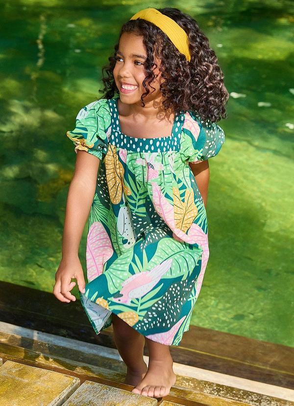 Nanai - Vestido Infantil Menina Folhas Verde