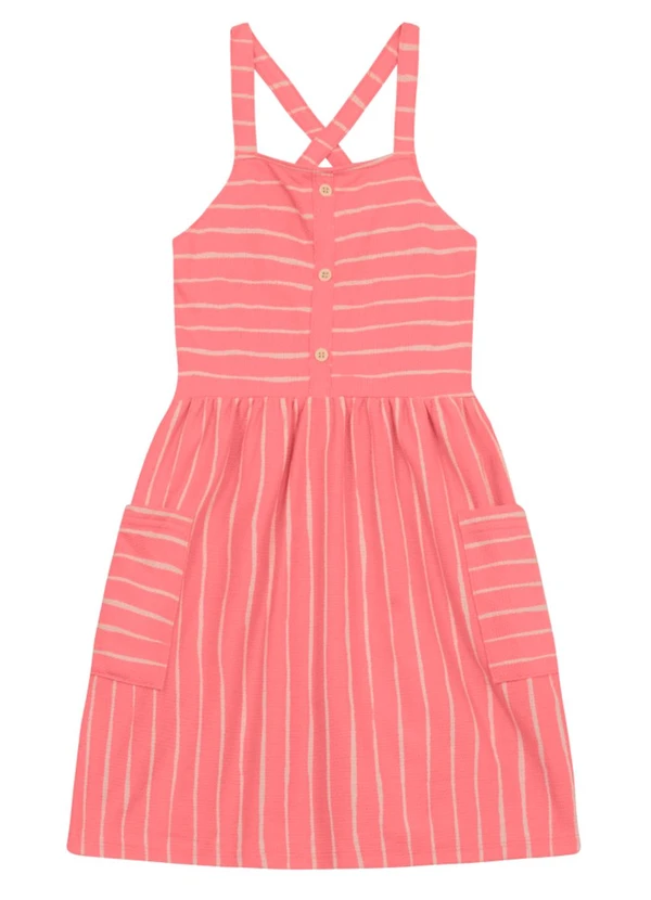 Brandili - Vestido Infantil Menina Listrado Rosa