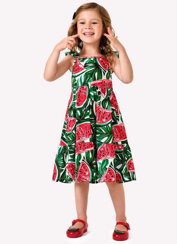 Kyly - Vestido Infantil Menina Melancia Branco