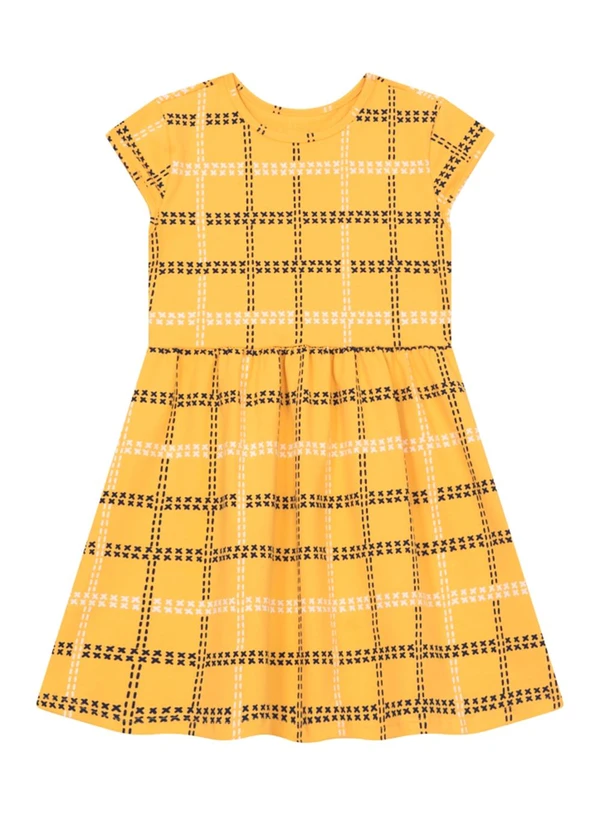 Brandili - Vestido Infantil Menina Quadriculado Amarelo