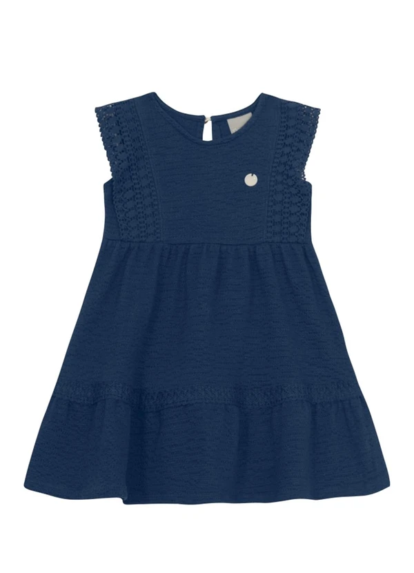 Brandili Mundi - Vestido Infantil Menina Tecido Texturizado Azul