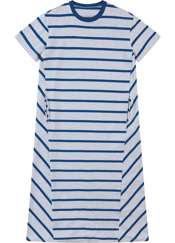 Malwee - Vestido Listrado Mídi Azul