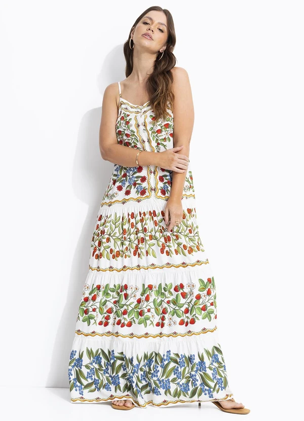 Farm - Vestido Longo Amor de Fruta Off White